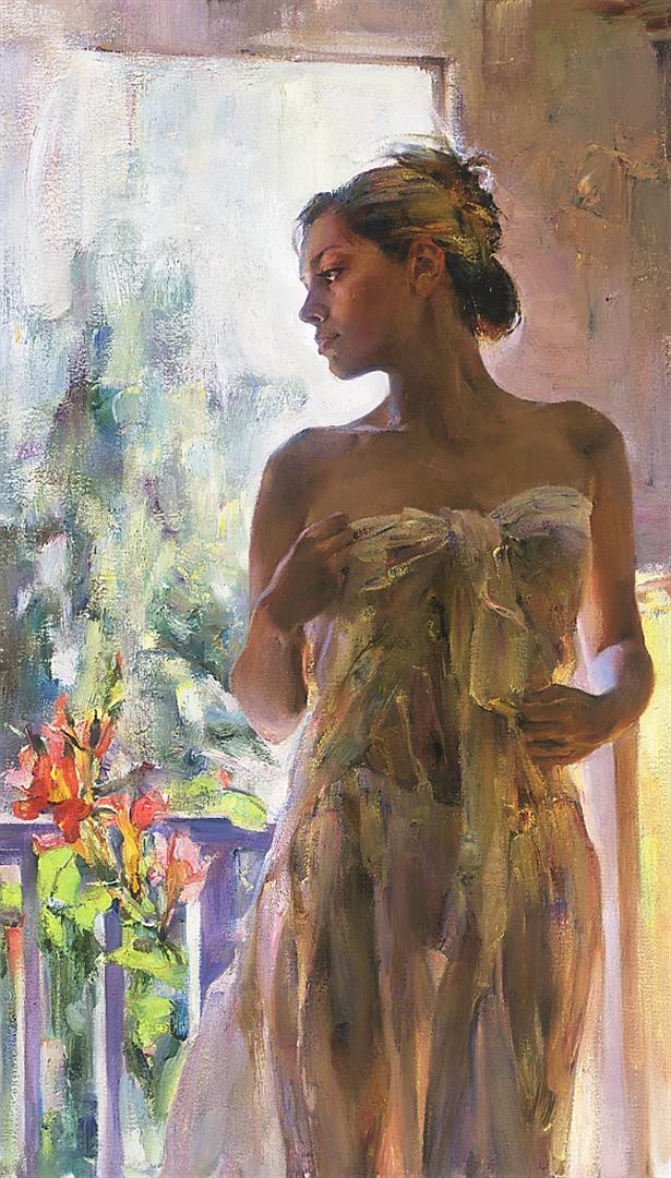 Abstract oil painting Girl and a bouquet of flowers Anatoly Tarabanov