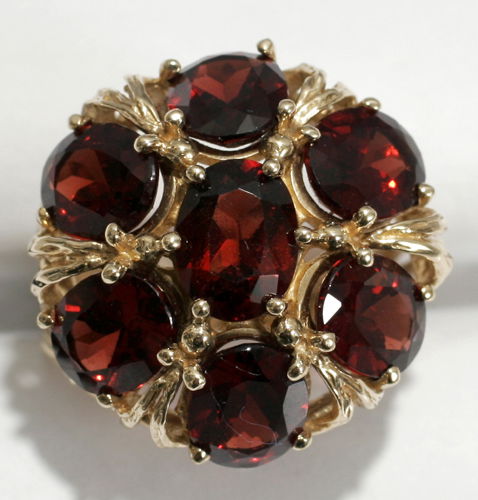SoldGarnet 10K Gold Ring,7 rich oval gems totaling approx. 8 carats in yellow gold, 5.3 grams, currently size 8 1/2.See Sold Price