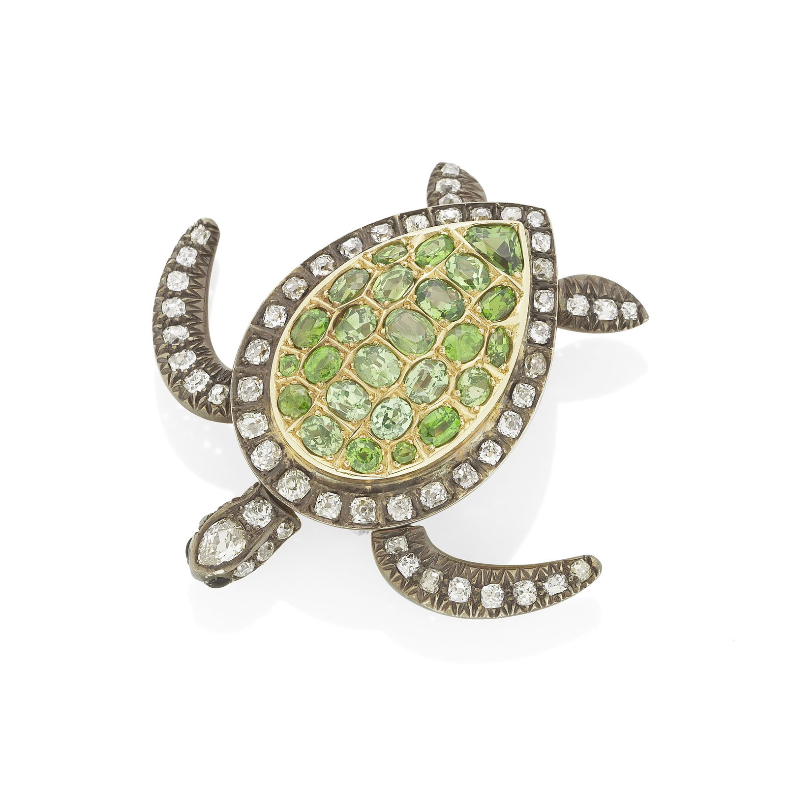 GARNET AND DIAMOND TURTLE BROOCH