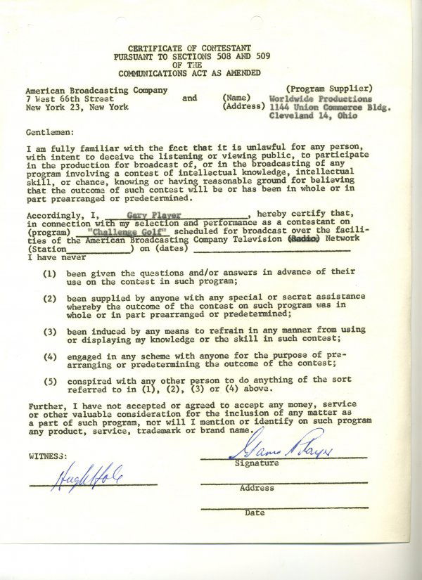 Gary Player Document Signed UACC PADA