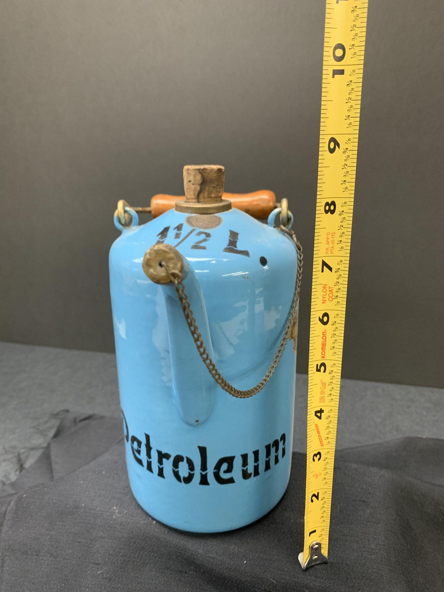 ASSORTED KEROSENE / OIL CONTAINERS, LOT OF FOUR3 days LeftGroup of Two Delco Motor Oil Metal Cans 5 Gallon and Half GallonMar 21, 2026Vintage Milk Jug With Lid Metal/RusticMar 25, 2026Valvoline 16 Gallon Oil Gas Drum Barrel Trash Can Garage Shop Mancave2 days LeftAMERICAN COUNTRY PAINTED TREEN KEROSENE FIRKIN / DISPENSER4 days LeftVINTAGE SERAPHIN GASOLINE TEST MEASURE TANKMar 15, 2026Vintage Brass Redi-Grip Fire Extinguisher5 days LeftA Collection of Vintage Metal Automotive Fluid CansMar 14, 20262 Qt. Cross Country Motor Oil Pouring CanMar 14, 2026Vintage Converted Fire Extinguisher Table Lamp2 days LeftCertified Oil Company 2 Gal. Motor Oil CanMar 16, 2026(4) Automotive product containersMar 28, 2026En-ar-co Motor Oil 1 Gallon Tin5 days LeftAntique Carbide Mining Lamp, Silver Plated CopperMar 21, 2026En-ar-co Separator Oil 1/4 Gallon Tin5 days LeftWINSTON-SALEM, NORTH CAROLINA WHISKEY MERCHANT'S STONEWARE LARGE ADVERTISING JUG4 days Left