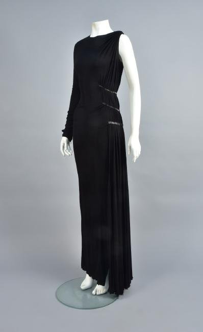 CHRISTIAN DIOR: SLATE BLUE SILK BIAS CUT BELTED LOGO GOWN Fall/Winter 2004 | John GallianoBonhams4(383)$1,800