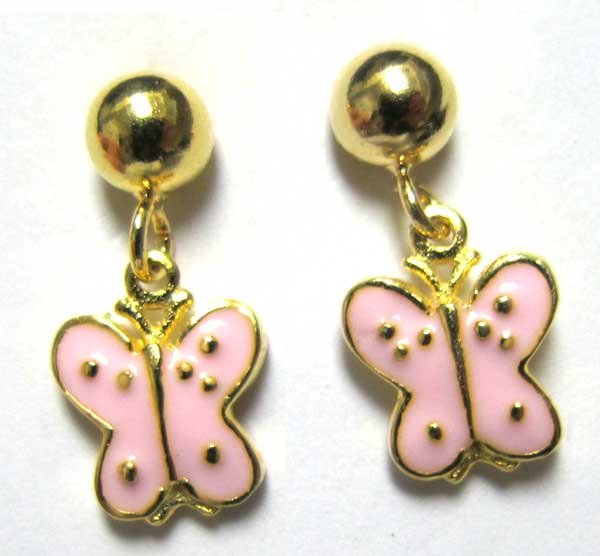 14K Gold Enamel Butterfly Earrings 0.4 G