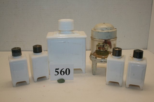 Automobilia LotFeb 21, 2026Lot Vintage Toy Steam Engines and AccessoriesMar 07, 2026Lot 5 Antique Pistol Powder FlasksMar 07, 2026Great Early Kitchenware Lot Inc. Atlas Hand Mixer, Canning Crock and Lightening MixerMar 16, 2026Lot of sterling silver dresser accessories, including various covered glass jars and scent bottles.Mar 01, 2026Stoneware Crock Lot Inc. 1 Gal Handled Crock w/ Lid, 2K Aleppo Penn. Decorated Crock and IND. CrockMar 02, 2026LOT OF VINTAGE POWDER / TALC TINSFeb 26, 2026LOT OF LIGHTBULBS, SHADE AND OIL LIGHTSFeb 26, 2026[ART] (14) Large Lot of 19th c. Glass Flasks, Bottles and Earthenware JugsMar 05, 2026Round Hill Farm, Mullens Dairy, Deeds Bros.,Steels & Shoemake Guernsey Farms Dairy BottlesMar 16, 2026Collection of Four German Ceramic Wall Mount Kitchen Canisters5 days LeftVintage Kitchen Beautilities Enamel Set 1930s 1940s Farmhouse Charm5 days LeftWestern Stoneware Weir Self-Sealing Jar w/2 Additional Lids, complete w/wire bail handle, lids em...(6) Standard Oil Service Motor Oil Bottles w RackMar 21, 2026Braun Hand Mixer, Beautiful Kitchenware Electric Can Opener, CapressoGroup of Vintage Coin BanksMar 07, 2026