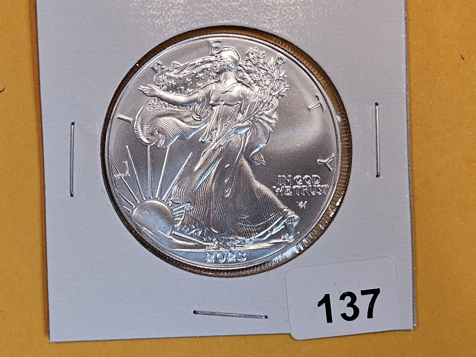 SoldGEM Brilliant Uncirculated 2023 American Silver EagleIn Original government packaging with certificate of authenticitySee Sold Price