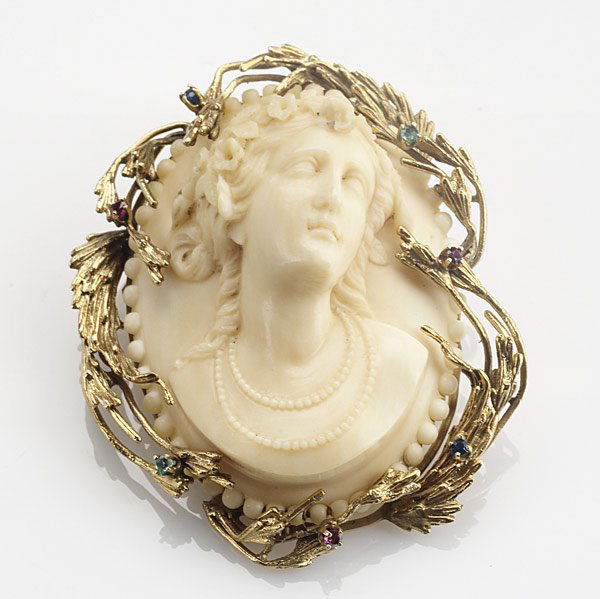 Estate 14k Gold Shell Cameo Pearl Halo Filigree BroochDuck on a Pig Auction Gallery4.3(1)$104 days Left