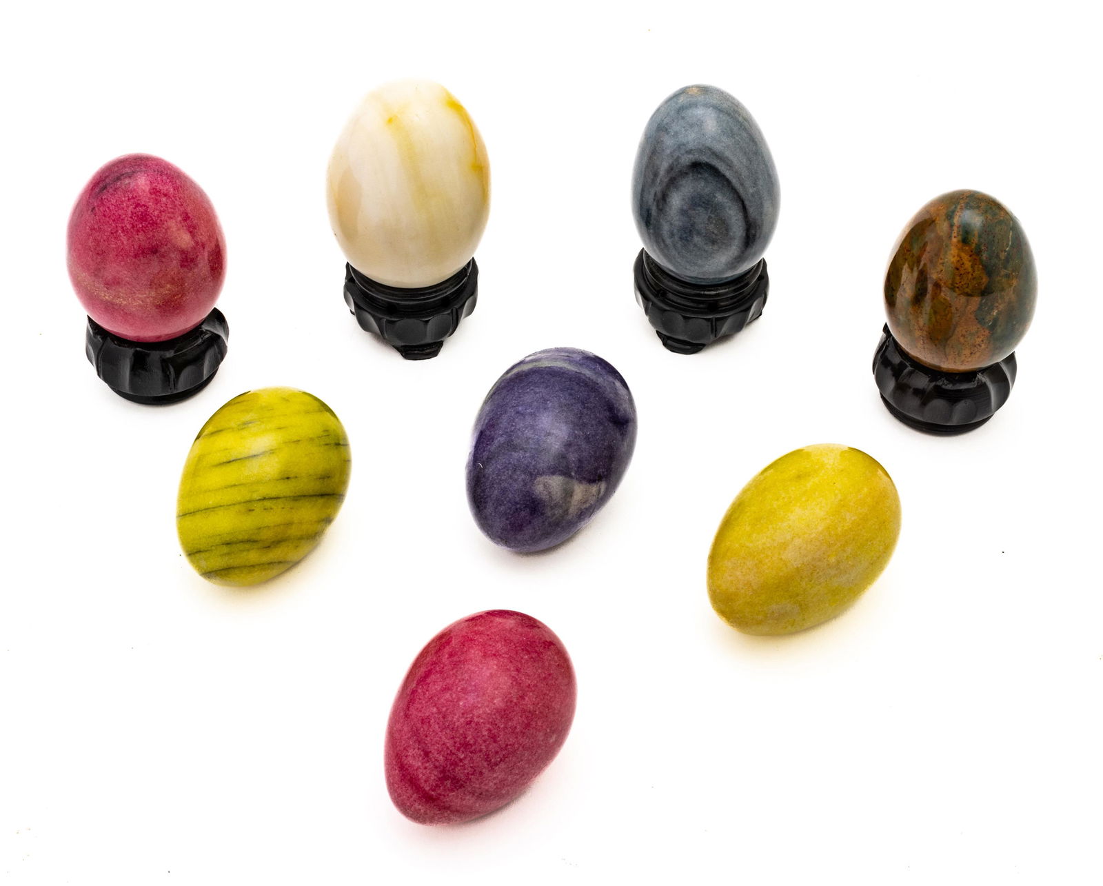 Gemstone Eggs; Malachite, Tiger Eye Etc. 8 pcs