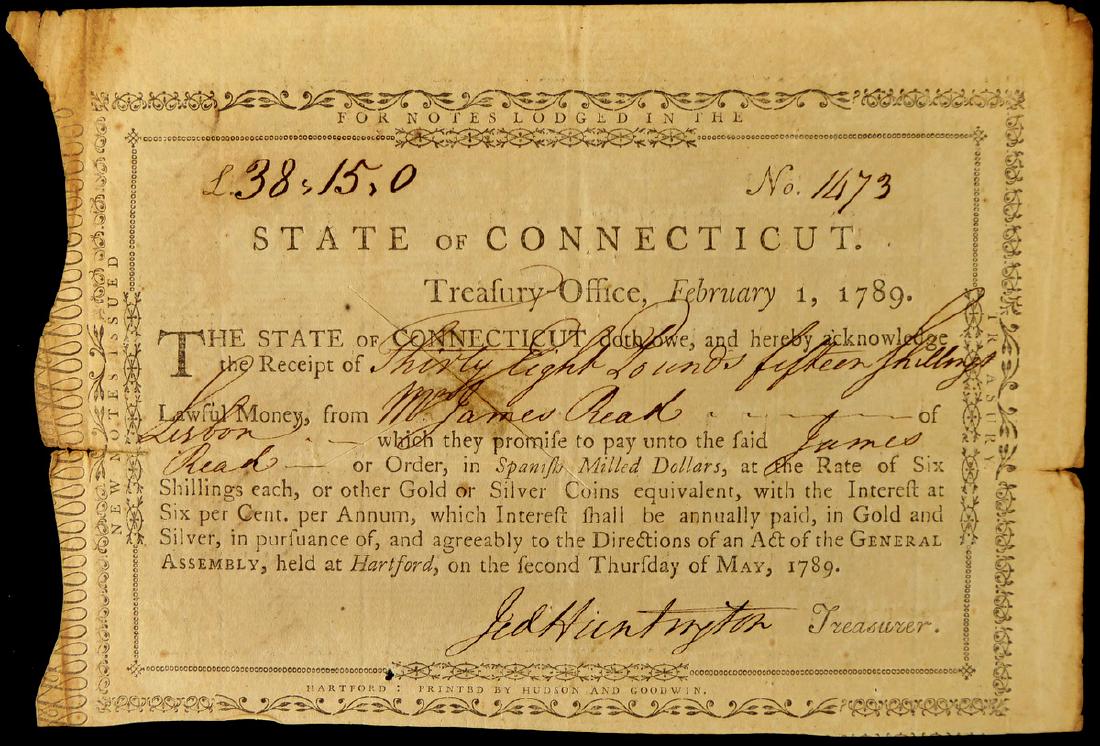 Gen JEDEDIAH HUNTINGTON - Receipt Signed