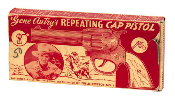 Sold2 GENE AUTRY TOY CAP GUNS/ CAP PISTOLS2 GENE AUTRY TOY CAP GUNS/ CAP PISTOLSSIGNS OF AGE AND WEAR GRIP COVER IS A BIT LOOSE ON ONE. UNTESTEDSee Sold Price