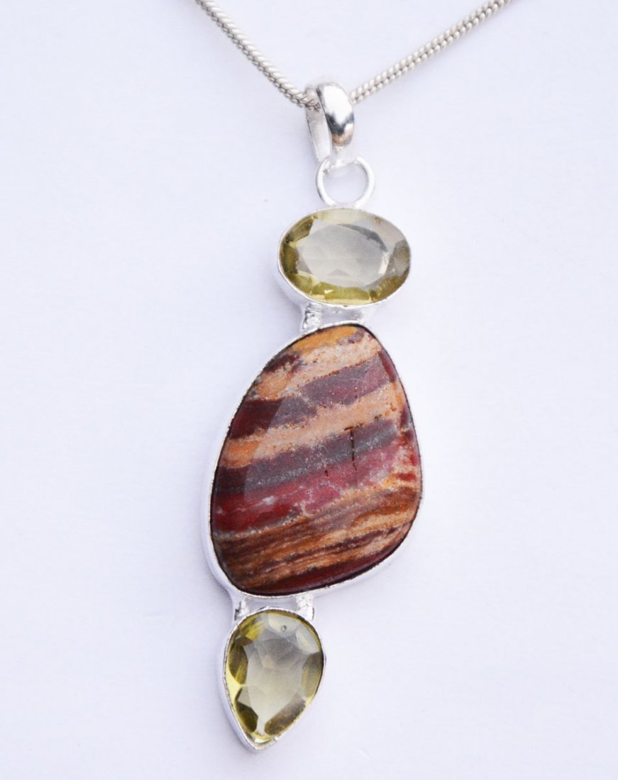 SoldGenuine Jasper & QuartzGorgeous Necklace with Genuine Jasper & Quartz with German Silver Alloy & Chain Length of Chain : 20 Inch Metal: German Silver Alloy Stone : Genuine Jasper & QuartzSee Sold Price