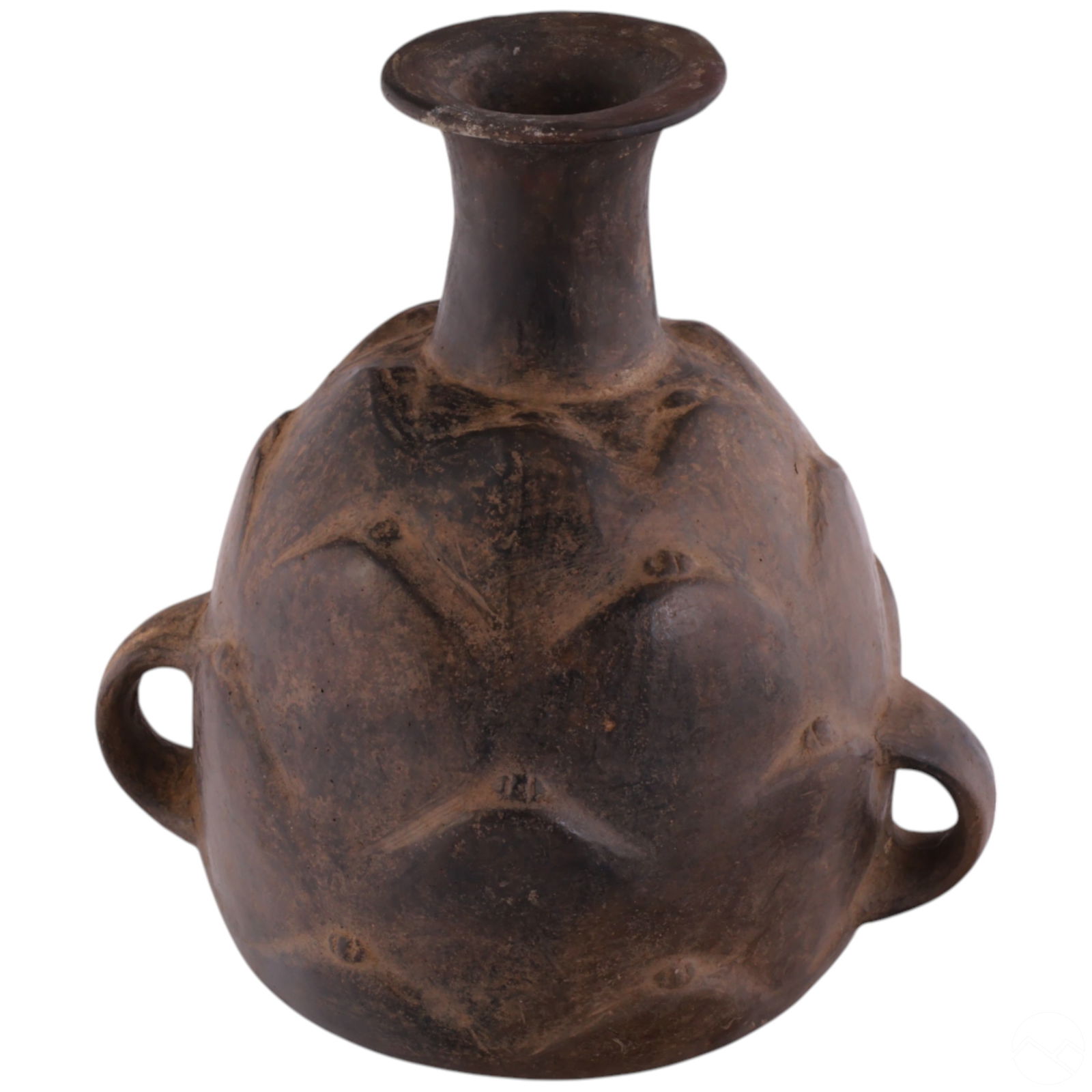 Geometric Earthenware Clay Vessel w/ Dual Handles
