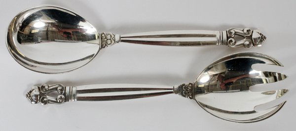 STERLING: Georg Jensen "Acorn" pattern sterling silver serving pieces, eleven pieces total includingSTERLING: Georg Jensen "Acorn" pattern sterling silver serving pieces, eleven pieces total including a boxed set, all pieces marked sterling and with Georg Jensen hallmark, pieces include: three piece