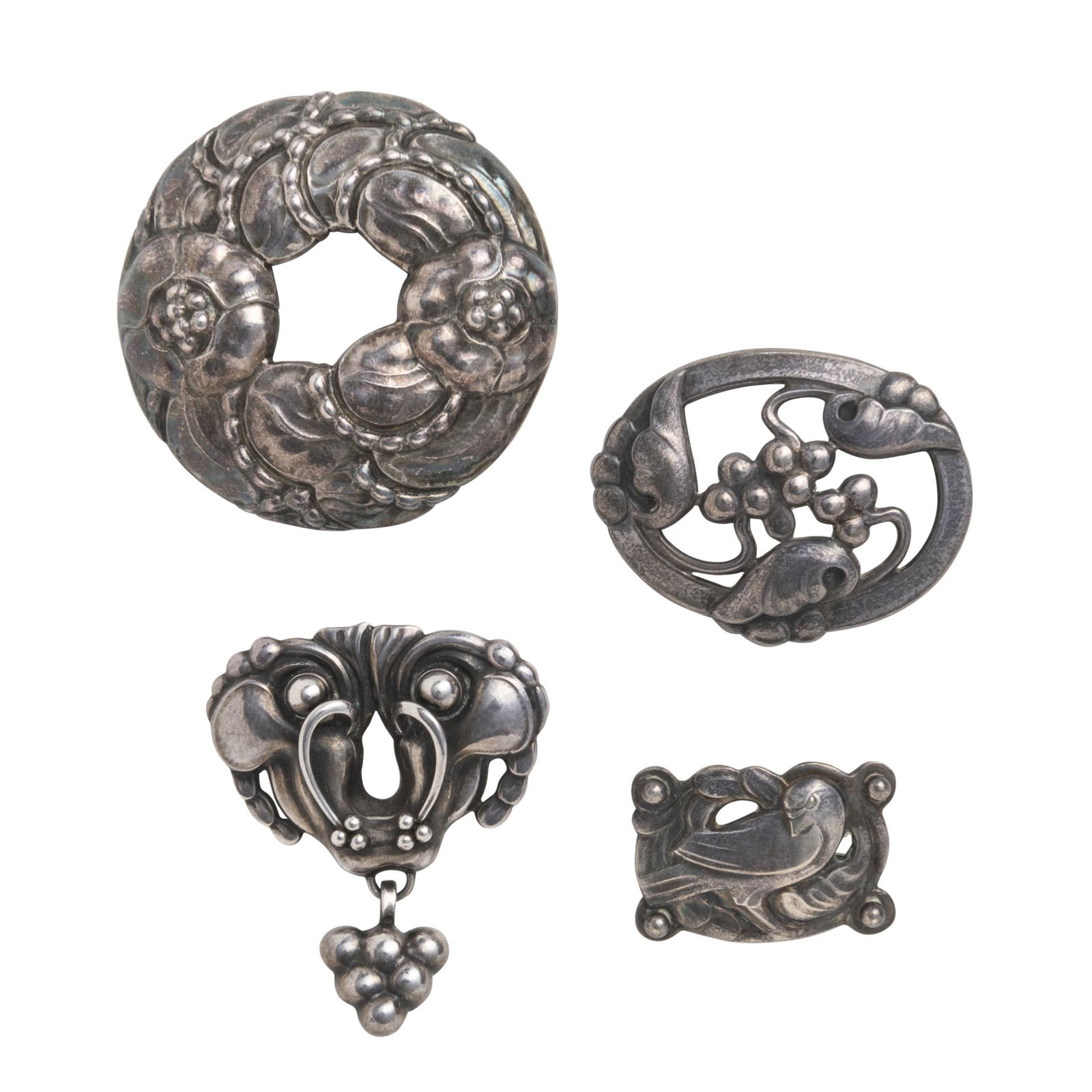 GEORG JENSEN: FOUR SILVER BROOCHES, DENMARK