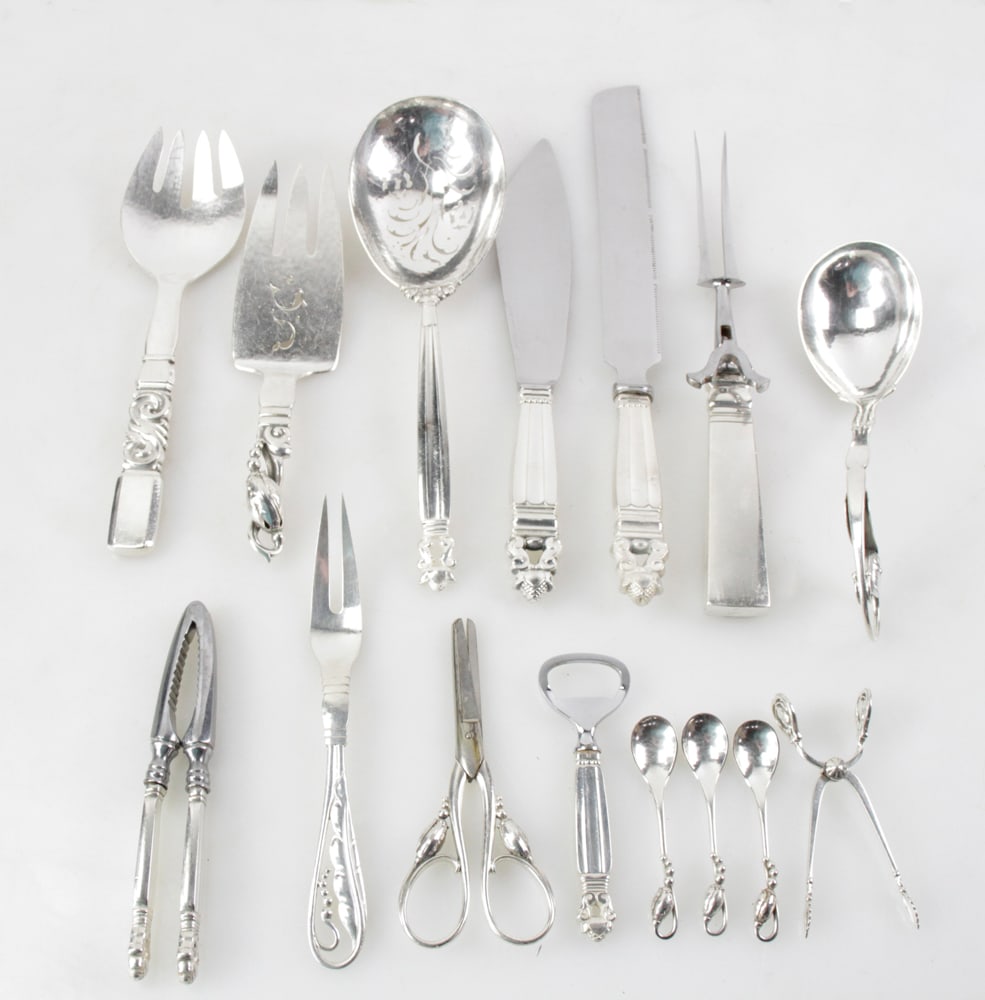 GORHAM AND OTHER STERLING SILVER FLATWARE AND SERVING UTENSILS, LOT OF 147 days LeftINTERNATIONAL SILVER CO. AND OTHER STERLING AND 0.950 SILVER FLATWARE AND SERVING UTENSILS, LOT OF7 days LeftSTIEFF AND OTHER STERLING AND COIN SILVER FLATWARE AND SERVING UTENSILS, LOT OF EIGHT7 days LeftLarge lot of sterling silver and silver handled utensils. To include: Durgin serving fork and spoon4 days LeftSilver-Plate Flatware & Serving UtensilsMar 08, 2026Collection Sterling Silver Table Wares3 days LeftAssorted Silverplate Flatware and Serving Pieces, 12 PiecesMar 07, 2026Rare Georg Jensen Koppel cutlery. Dinner service in sterling silver for 10 people.Rare Georg Jensen Koppel cutlery. Lunch service in sterling silver for six people.Georg Jensen, "Pyramid" Sterling Silverware Set5 hrs LeftGeorg Jensen Acanthus Sterling Silver Flatware Set for 12 - 171 Pieces4 days LeftGeorg Jensen Continental Sterling Silver Flatware Set Service for 8 50 pcs529 Lots AwayGeorg Jensen Continental Sterling Silver Flatware Set for 12 164 PiecesFeb 25, 2026Tiffany & Co. Sterling 'Audubon' Pattern Flatware Service for 12Mar 19, 2026Assorted Sterling Serving and Tableware GroupMar 15, 2026Georg Jensen Continental Sterling Silver 4-Piece Luncheon Place Setting7 days Left