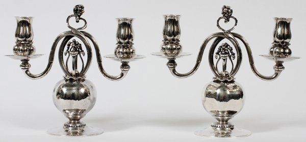 GEORG JENSEN STERLING TWO-LIGHT CANDELABRA