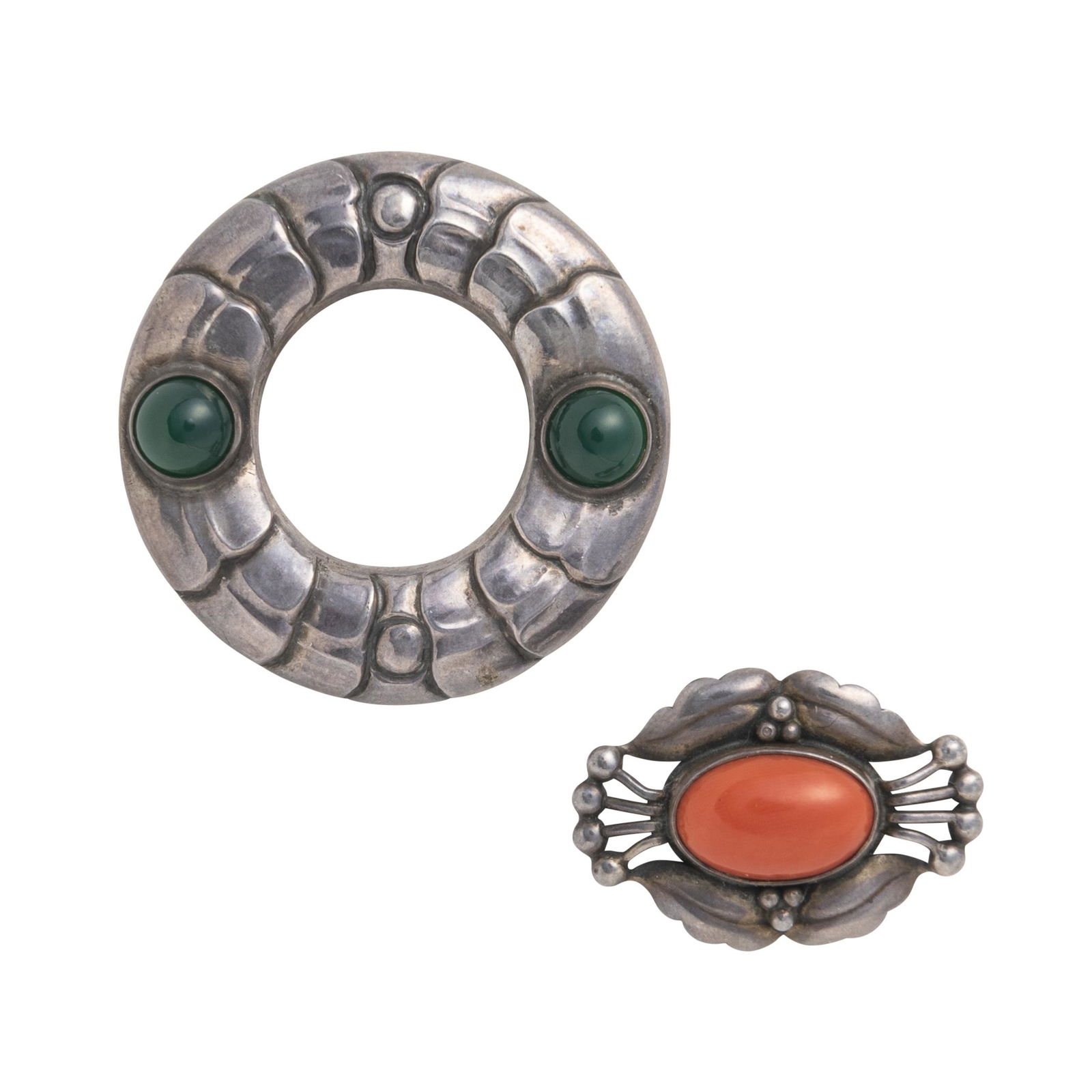 GEORG JENSEN: TWO SILVER GEM-SET BROOCHES, DENMARK