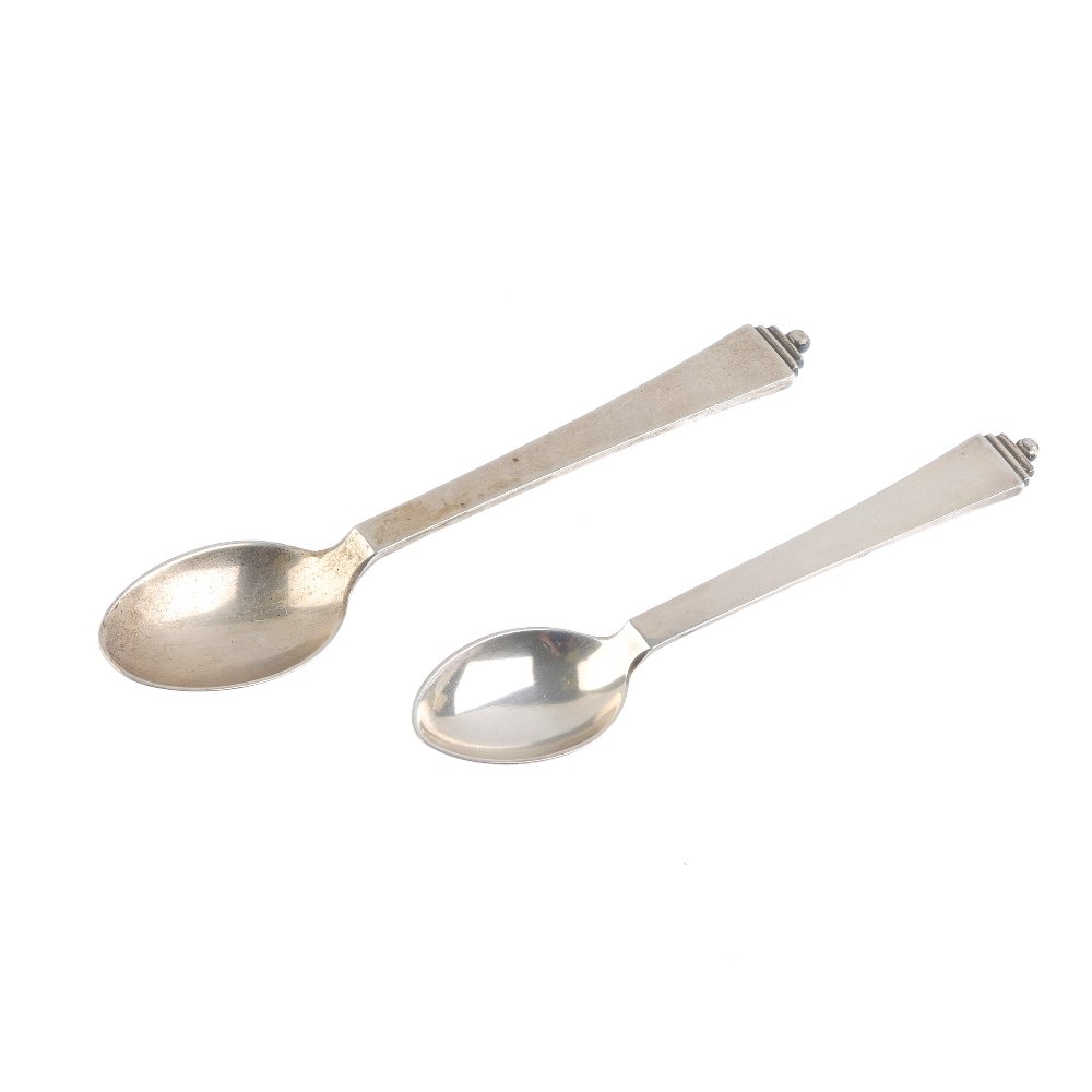 GEORG JENSON - two silver spoons. Each designed as a