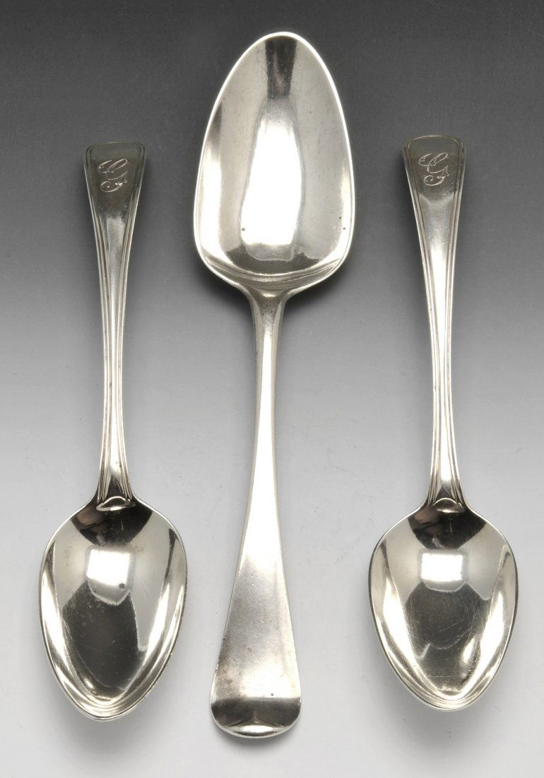 Six Hotel Silver Plated Souvenir Tea SpoonsFeb 25, 2026London , Edinburgh 1788 - 1845 George III - Victorian sterling silver associated or harlequinFeb 18, 2026Glasgow circa 1770 by Adam Graham A pair of George III Scottish provincial silver tablespoonsFeb 18, 2026Two Pieces of English Sterling FlatwareFeb 15, 2026London 1838 - 1846 by Samuel Hayne and Dudley Cater A Victorian sterling silver table service ofFeb 18, 2026Two George III Silver Tablespoons5 days LeftLondon 1857 by John Samuel Hunt over striking George Adams of Chawner and Co A pair of VictorianFeb 18, 2026Collection of Nineteenth Century American Coin Silver and Hollow Body Spoons5 days Left1939 International Silver Court Silverplate Glossy Place Oval Soup Spoons- Set of 6Gorham Sterling Silver “Strasbourg” Pattern Flatware ServiceFeb 18, 2026English Silver Plate Serving Spoons, 6Mar 12, 2026Four Whiting Arabesque Sterling Silver Teaspoons5 days LeftLondon 1697 by Henry Penstone A William III Britannia standard silver table spoonFeb 18, 2026AN ASSEMBLED GEORGE III SILVER DESSERT SERVICE MARK OF MOSES BRENT AND OTHERS, LONDON, 1786-1814Feb 19, 2026Dublin and London 1788, 1817-1829, 1831, 1901 A George III to Edwardian mostly Irish sterling silverFeb 18, 2026Three Silver-Plated Utensils from Holmes & Edwards, Rogers & Hamilton, and R. Wallace