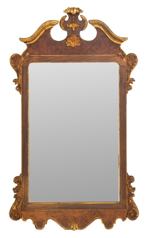 George II Style Parcel Gilt Walnut Mirror