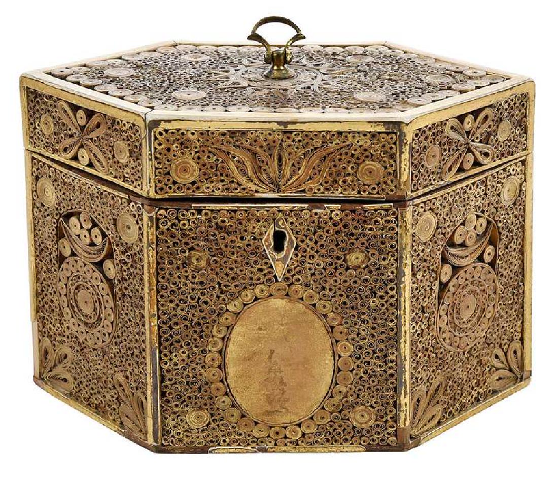 George III Gilt Heightened Paper Scroll Caddy