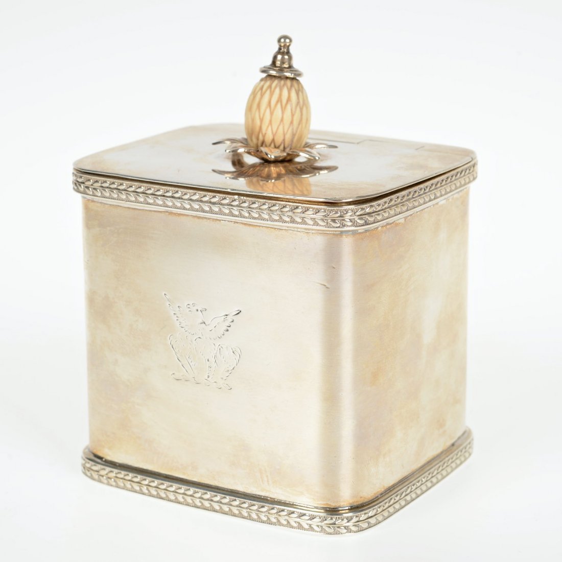 A GEORGE III SILVER OVAL TEA CADDY2 days LeftA GEORGE III SILVER OVAL TEA CADDY2 days LeftA GEORGE III SILVER OVAL TEA CADDY2 days LeftTiffany & Co. Sterling Silver Tea CaddyFeb 25, 2026VICTORIAN MANNER COVERED SILVER TEA CADDY W HANDLESFeb 28, 2026Victorian Silver Plate Oval Tea CaddyMar 12, 2026Victorian Silver Plate Tobacco Jar, ca. 1850Mar 12, 2026A GERMAN SILVER MOUNTED AND GLASS PINEAPPLE2 days LeftAN EDWARDIAN SILVER TEA CADDY2 days LeftA PAIR OF GEORGE III SILVER SHAPED OVAL TEA CADDIES, AARON LESTOURGEON, LONDON 1781Mar 03, 2026G. Schanck, NY Coin Silver Lidded Sugar Bowl2 days LeftGEORGE III INLAID SATINWOOD OCTAGONAL TEA CADDY6 days LeftAustrian Sterling Silver Tea Caddy Eagle Finial Brite Cut c.18905 days LeftEarly 20th Century Antique Silver Plate Chafing Dish with Pineapple Finial2 days LeftA SILVER HAMMERED JAR AND COVER2 days LeftA George IV silver-gilt and gold mounted snuff box Alexander J Strachan, London 1824