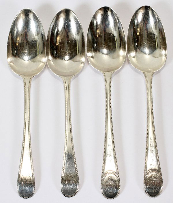 GEORGE III STERLING TABLE SPOONS, FOUR