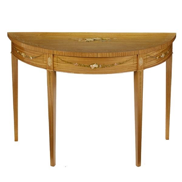 A GILTWOOD AND PAINTED SATINWOOD DEMI-LUNE CONSOLE TABLE, IN THE MANNER OF THOMAS CHIPPENDALEDreweatts Donnington Priory4.4(34)£460