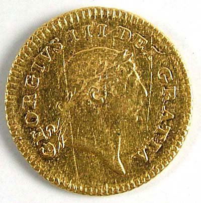 SoldEnglish Milled Coins - George III - 1800 - Gold Third GuineaDated 1800 A.D. Obv: profile bust with GEORGIVS III DEI GRATIA legend. Rev: crown with date below and MAG BRI FR ET HIB REX legend. S. 3738. 2.73 grams. Found Berkshire, UK. [No Reserve]See Sold Price
