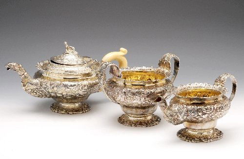 George IV silver composite three piece silver tea s