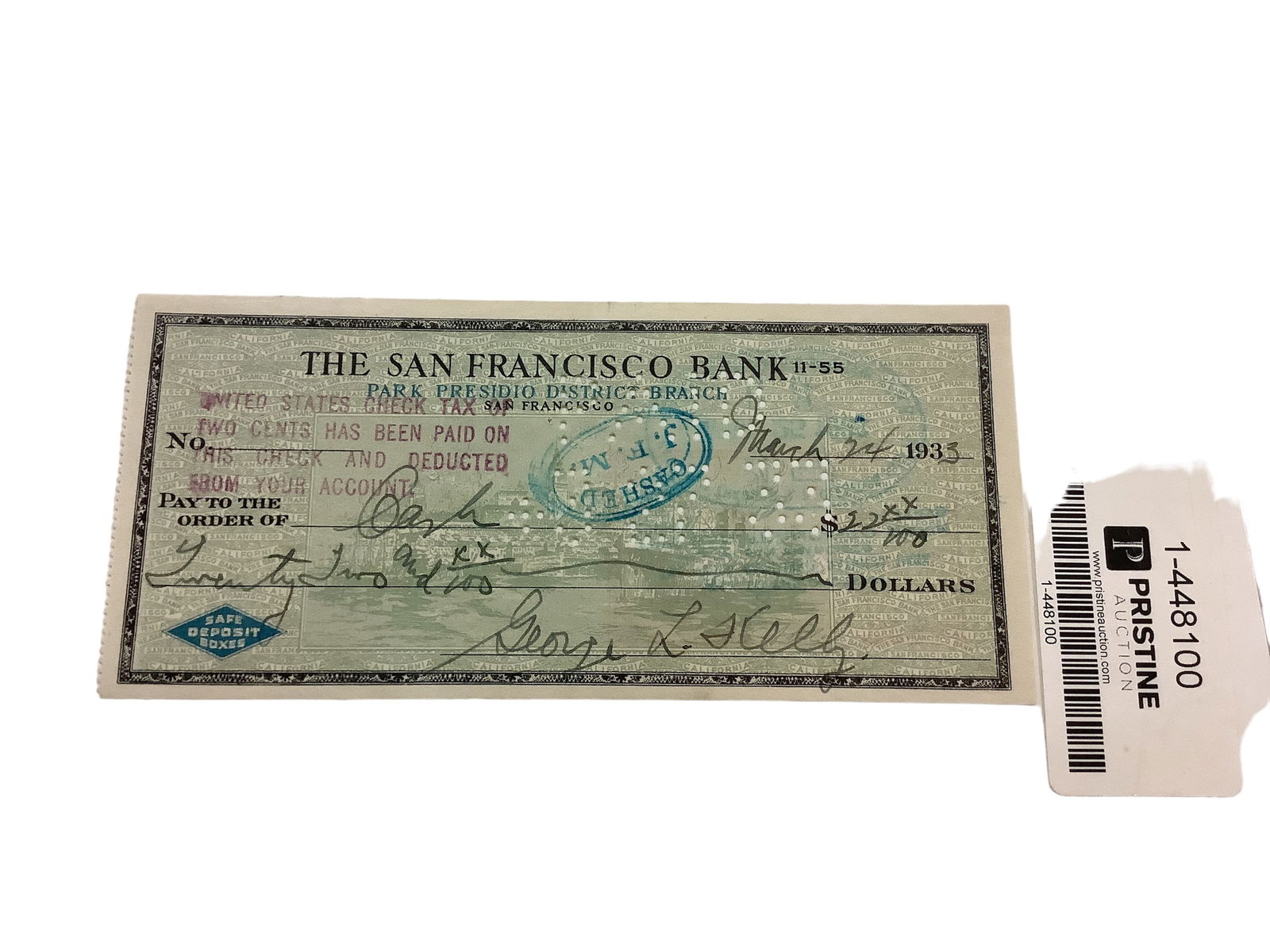 George L. Kelly Signed Personal Check