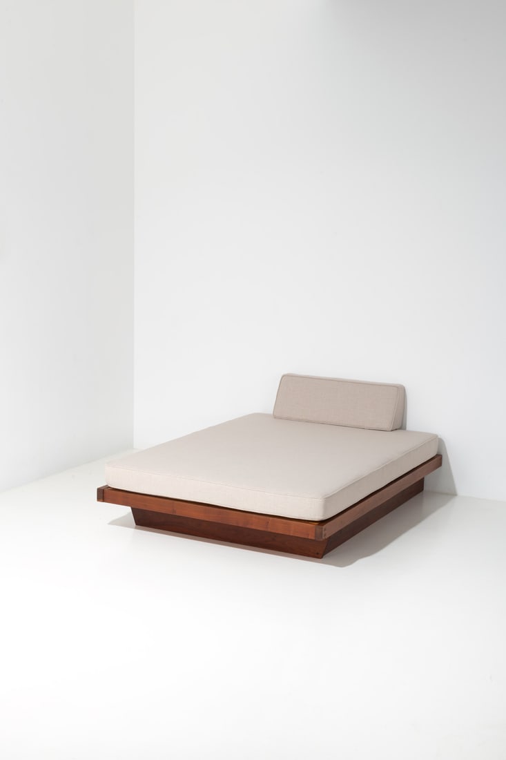 SoldGeorge Nakashima (American, 1905–1990) Conoid platform bed, full size, 1971George Nakashima (American, 1905–1990) Conoid platform bed, full size, 1971 walnut production markings on underside 10 ½ h × 54 w × 75 ½ d in (27 × 137 × 192 cm) ThSee Sold Price