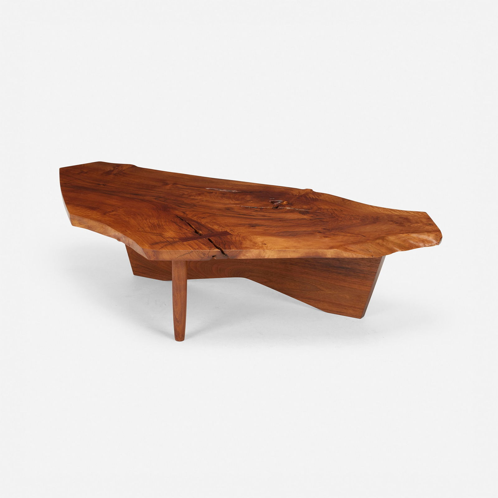 SoldGeorge Nakashima, Slab coffee tableGeorge Nakashima Slab coffee table Nakashima StudioUSA, 1961American black walnut, rosewood 13.5 h x 24 w x 67.75 d in (34 x 61 x 172 cm) Table features a single slab top with two free eSee Sold Price