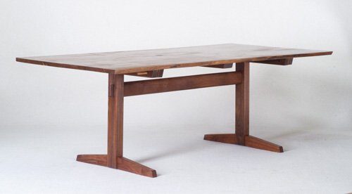 SoldGeorge Nakashima, Trestle dining tableGeorge Nakashima Trestle dining table Nakashima StudioUSA, c. 1950American black walnut, rosewood 29 h x 72 w x 40.25 d in (74 x 183 x 102 cm) Table features three rosewood butterflies.<See Sold Price