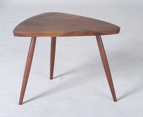 SoldGeorge Nakashima walnut side table circa 1964George Nakashima walnut side table circa 1964, having a triangular top and rising on a tripod base, 20"h x 24"w x 19"d Provenance: Table ordered directly from Nakashima by interior designer for clientSee Sold Price