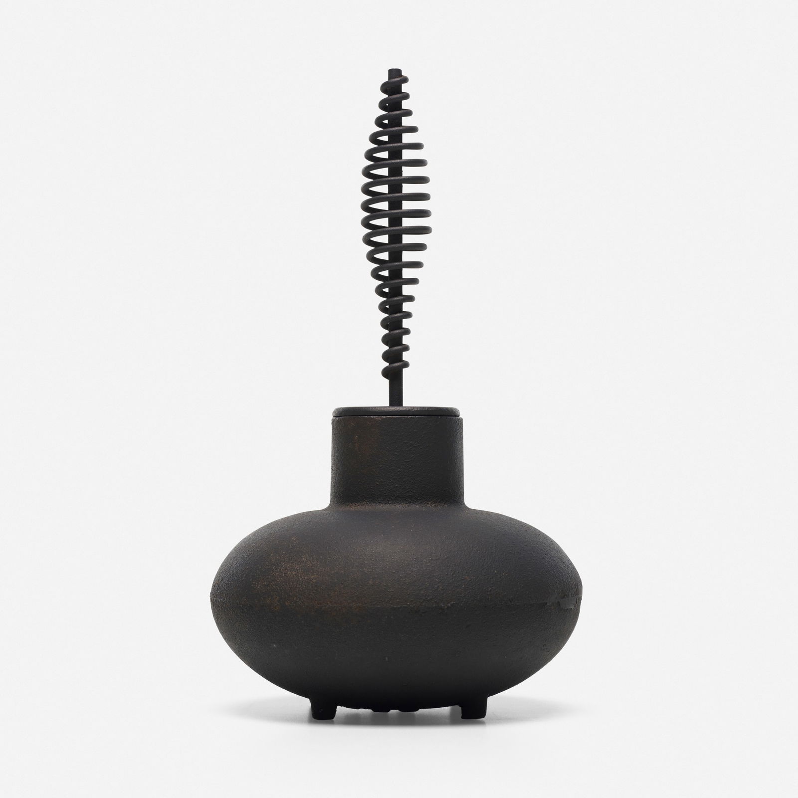 SoldGeorge Nelson & Associates, firestarterGeorge Nelson & Associates firestarter Howard Miller Clock CompanyUSA, c. 1950cast iron11.5 h × 6.25 d in (29 × 16 cm)See Sold Price