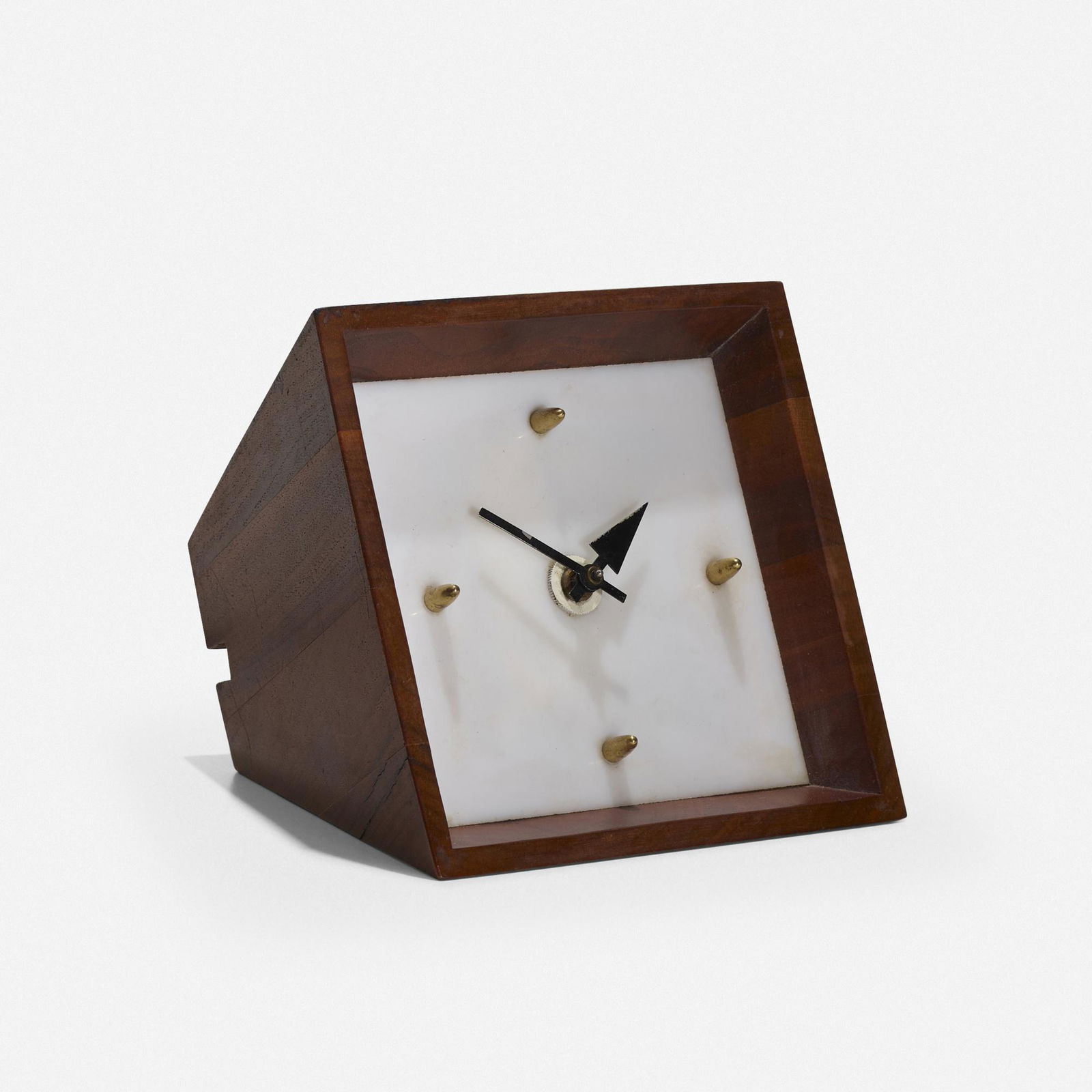 SoldGeorge Nelson & Associates, Baroque table clockGeorge Nelson & Associates Baroque table clock, model 2255 Howard Miller Clock CompanyUSA, 1957walnut, brass, glass, aluminum, enameled aluminum15.25 h × 8.75 w × 5 d in (39 × 22See Sold Price