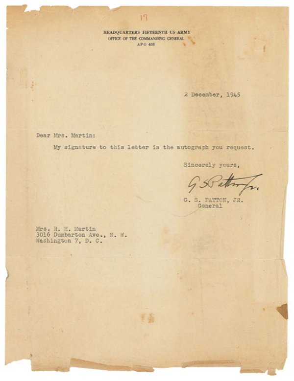 George Patton Last Letter Signed Extent UACC PADA