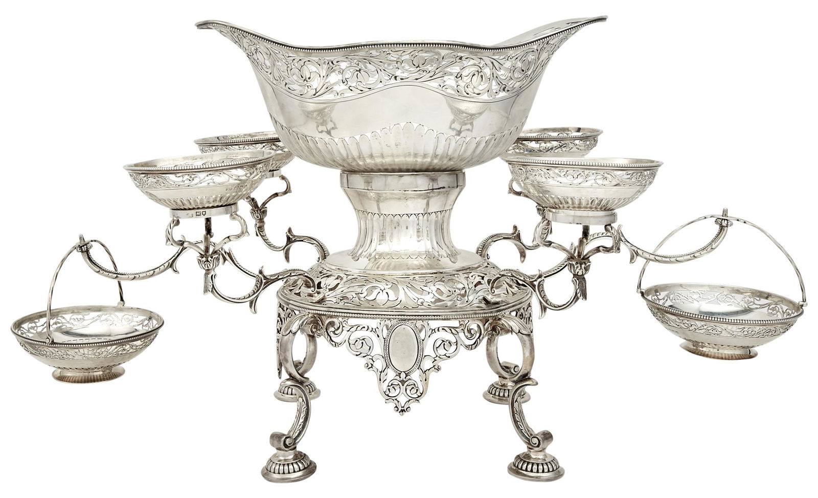 English Georgian Paul Storr Sterling Silver TureenApr 01, 2026A George III Cut Glass Mounted Silver Epergne6 days LeftGeorge III Sterling Silver Epergne5 days LeftItalian 925 Sterling Silver Eleven Light Candelabra with Leaf AppliquesMar 20, 2026An English Silver Five-Light Candelabrum6 days LeftAntique American 925 Sterling Silver Floral Chased Centerpiece Basket4 days LeftEnglish Sheffield Plated Hollow Ware LotMar 21, 2026Set of Four George III Sterling Silver Covered Sauce Tureens5 days LeftA George III Pierced and Engraved Silver Cake Basket6 days LeftJohn Denzilow / Paul Storr Georgian British Sterling Silver Sauce TureenMar 19, 2026Antique 925 Sterling Silver Handmade Floral Basket Bowl 675g4 days LeftCenterpiece Epergne, Four Arm, Victorian English Georgian Sheffield SilverplateApr 18, 2026Elegant Handmade 925 Sterling Silver Fruit Bowl Centerpiece6 days LeftAN IMPRESSIVE SUITE OF SEVEN STERLING SILVER SERVING BASKETS, EARLY 20TH CENTURYMar 19, 2026Elegant 7 Piece 925 Sterling Silver Floral Leaf Epergne CenterpieceMar 21, 2026Louis XV Style French Silvered Bronze Surtout de Table Centerpiece With Glass Bowl2 days Left