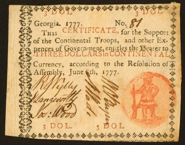Georgia $3 June 8, 1777 This note is very