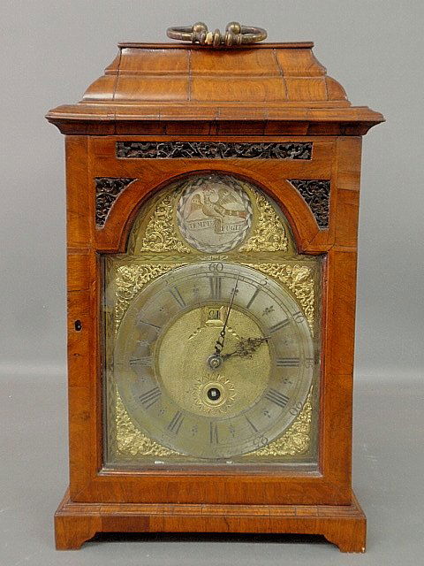 Georgian burl walnut cased bracket clock, c.1760, the