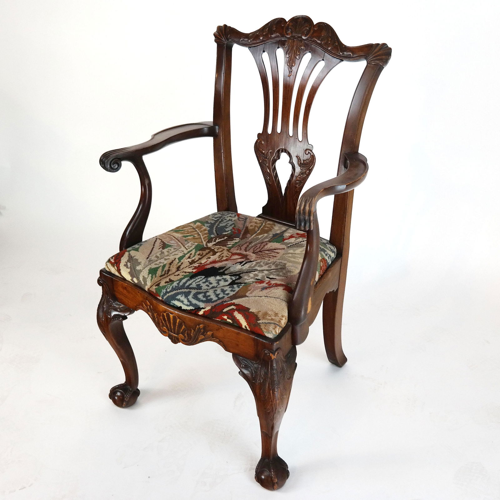 19TH C CHIPPENDALE STYLE CHAIR W/ NEEDLEPOINT SEAT