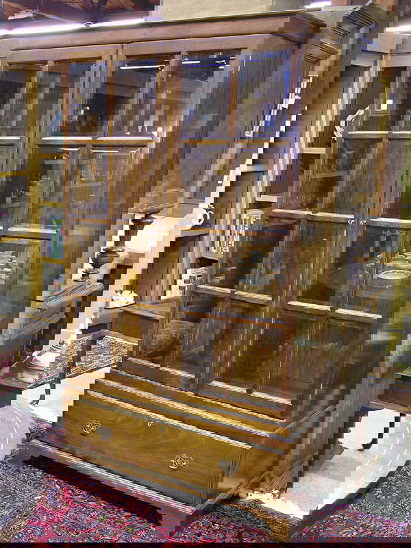 SoldGeorgian Style Mahogany Bookcase c.1940's-50'sGeorgian Style Mahogany Bookcase Wood Trimmed Glass Doors c.1940's-50's - 73 in tall x 40 x 14See Sold Price