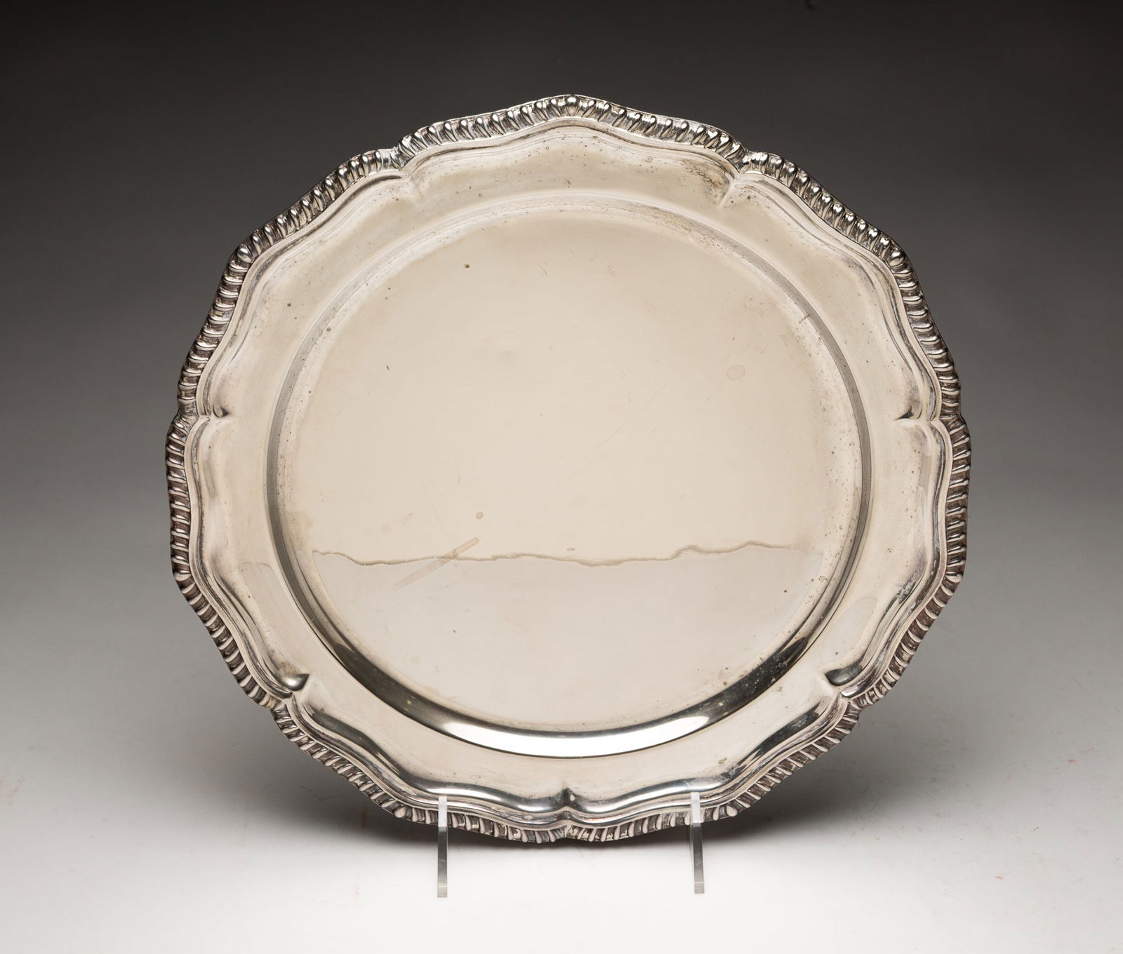 GEORGIAN-STYLE SILVER PLATED LOBED CIRCULAR PLATTER.
