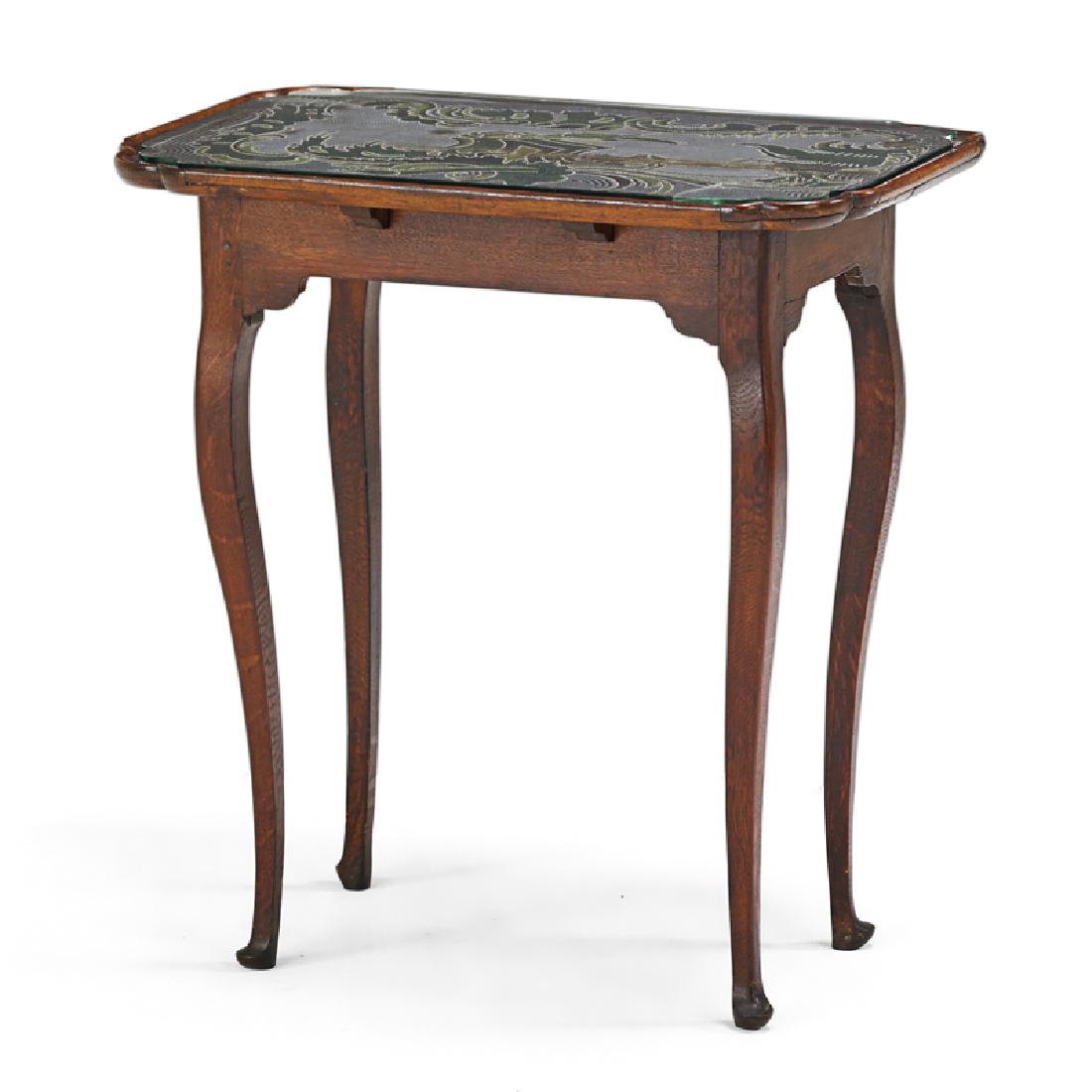 GERMAN BEADWORK INSET OAK TEA TABLE