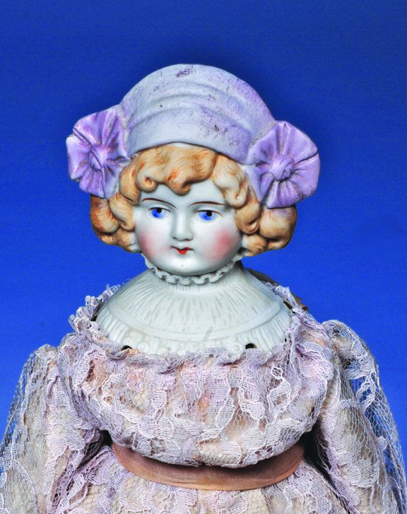 GERMAN BISQUE BONNET HEAD DOLL. Marks: Germany 0.