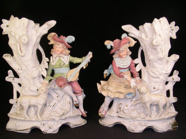 GERMAN BISQUE FIGURAL SPILL STYLE VASES