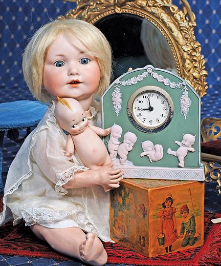 GERMAN BISQUE KEWPIE & KEWPIE JASPERWARE CLOCK. 5