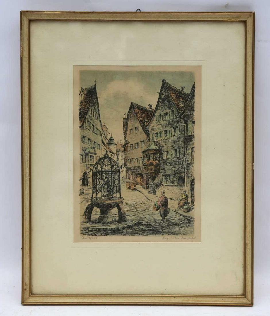 GERMAN COLORED ARCHITECTURAL ENGRAVING