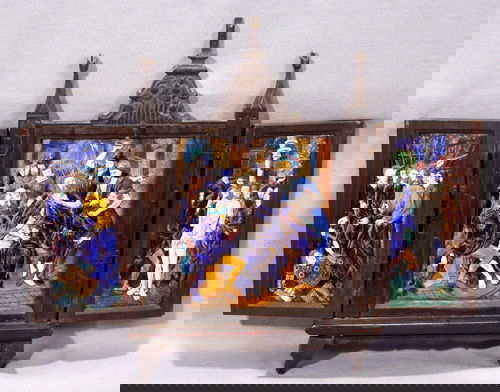 GERMAN ENAMEL TRIPTYCH, SCENES FROM THE PASSION O