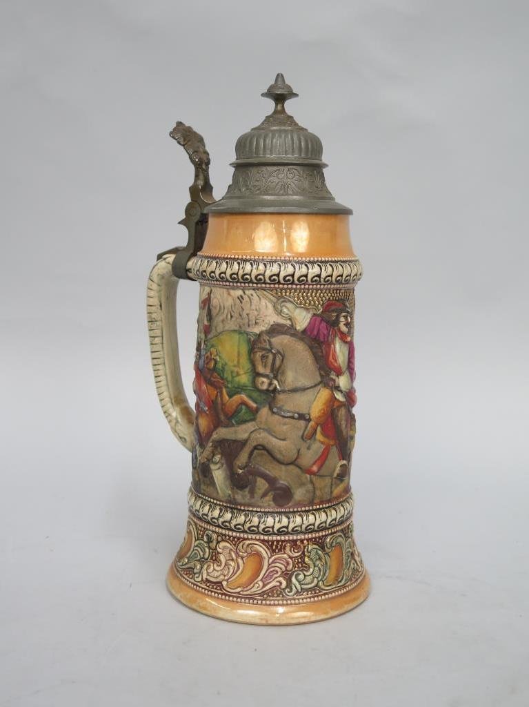 Antique c. 1900 Gertz 1816 German Stein 2L """"Tiroler Leben"""" Pouring Vessel w/ Lid (French Zone)ART 4 AUCTION4.3(4)£100